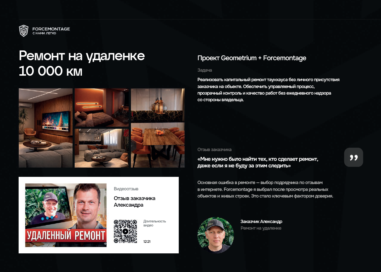 Проект удалённого ремонта таунхауса, где заказчик находился в Латинской Америке, а объект — в Москве. Основной задачей было обеспечить прозрачный процесс, техническую корректность и контроль скрытых работ без постоянного присутствия владельца. В результате ремонт идёт без сбоев и конфликтов, а все страхи, связанные с удалённым ремонтом, сняты.